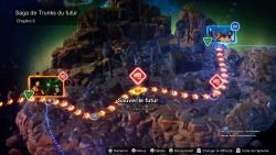 DB Super. On se déplace sur un plateau de jeu de l'oie et chaque case est un combat, où on nous présente la situation via des scénettes très courtes avec le moteur du jeu et beaucoup de diapos qui font un peu cheap quand on voit la débauche d'effets, la qualité des graphismes et la modélisation de très bonne facture des personnages. La jouabilité se rapproche beaucoup des jeux