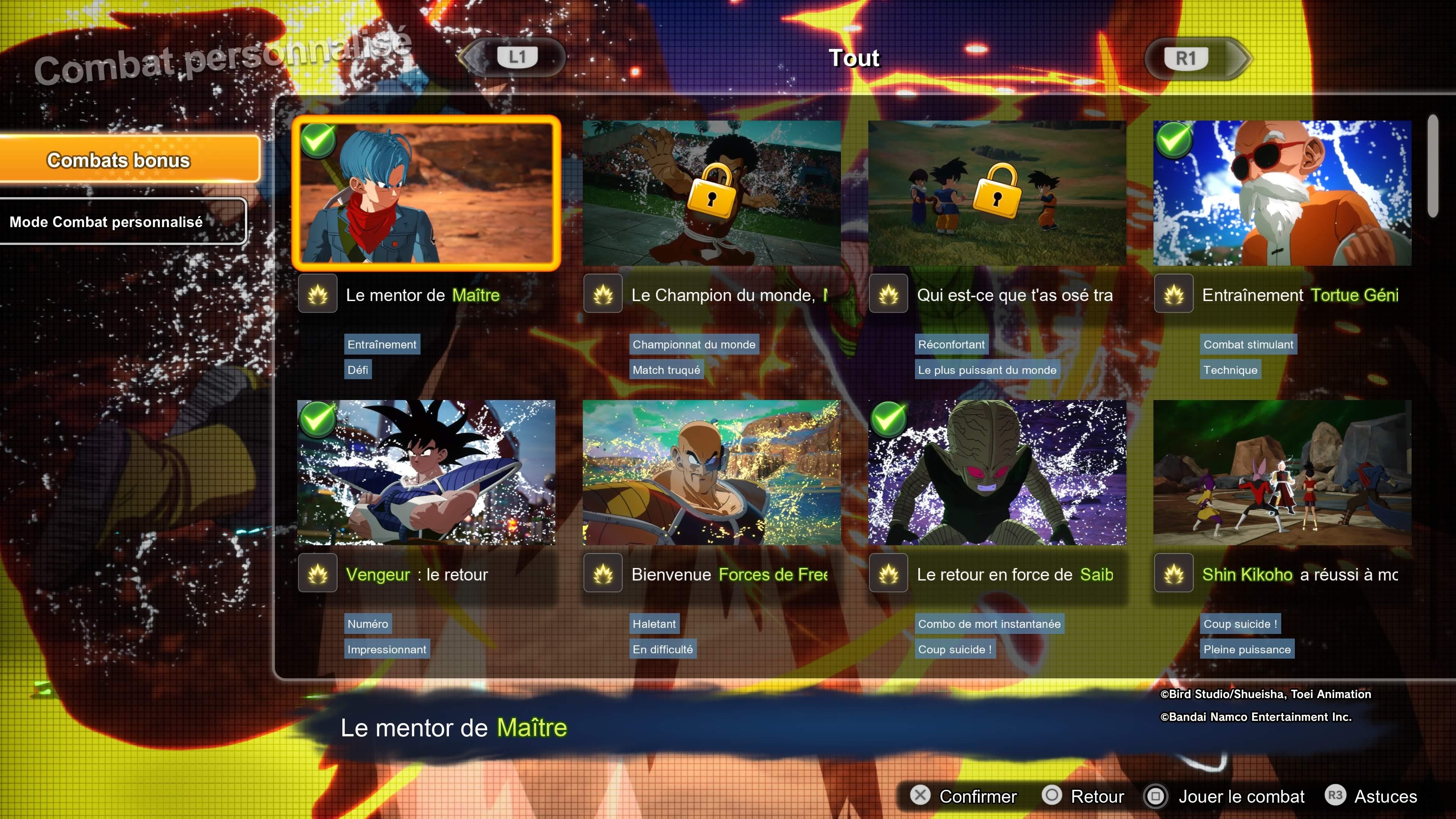 défis pour déverrouiller des personnages, titres, dragon ball et capsules de personnalisation.