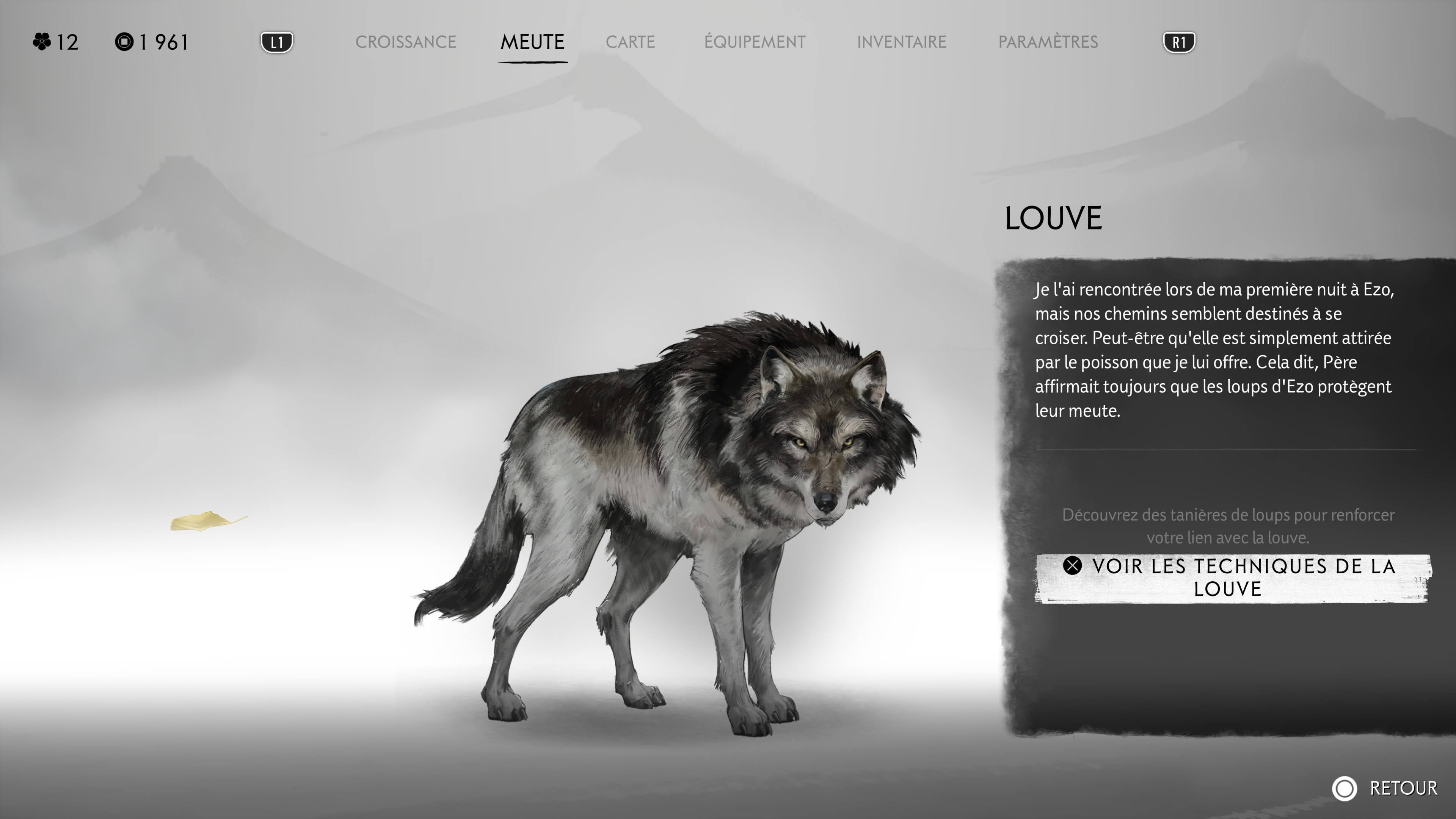 À un moment clé du récit, Atsu gagne la possibilité de combattre aux côtés d’une louve, ou de l’invoquer en pleine bataille. L’animal dispose de ses propres compétences, que l’on débloque en libérant ses congénères dispersés dans le monde. Cette relation donne une belle dynamique aux affrontements et crée une vraie complicité entre la protagoniste et son alliée. Et à deux, il ne sera pas de trop pour affronter l’armée des Six de Yōtei.