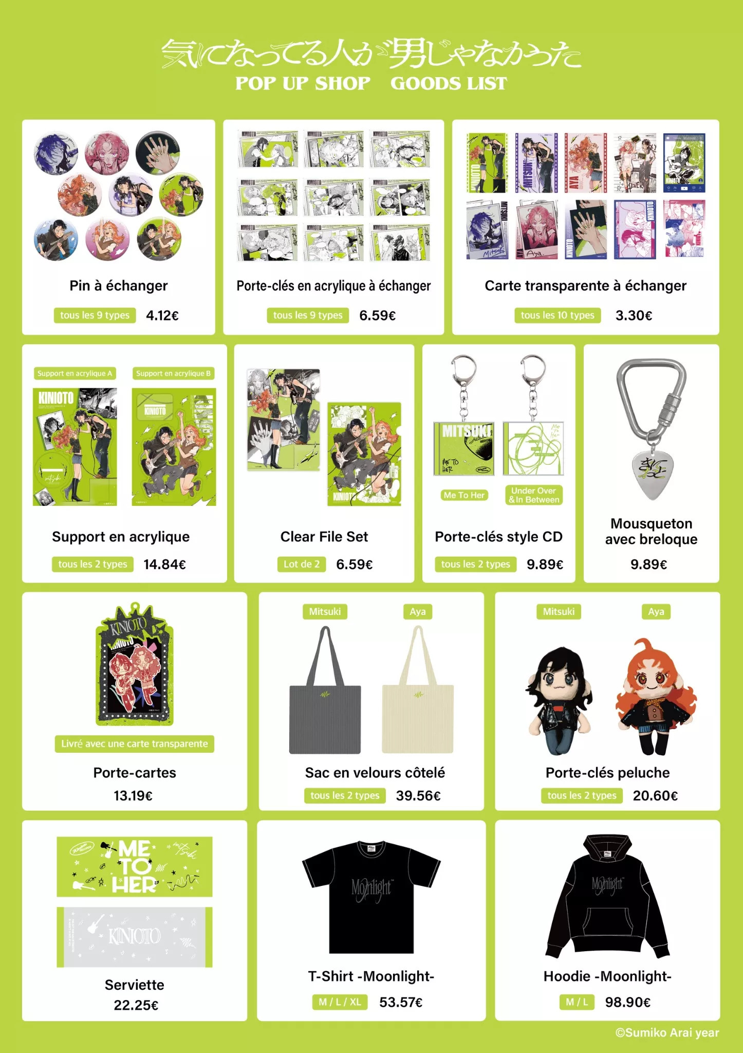 Le store proposera une large gamme de produits dérivés aux couleurs de Mitsuki et Aya. Attention cependant :